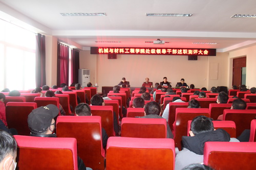 2020年1月4日下午,机械与材料工程学院在机械实验楼206会议室召开处级领导干部年度述职与测评大会。副校长纪岗昌在校党委委员、宣传部部长冯健、组织部干部科科长黄伟的陪同下参加了此次述职测评会。会议由冯健主持,机材学院领导及全体教职工参加了会议。