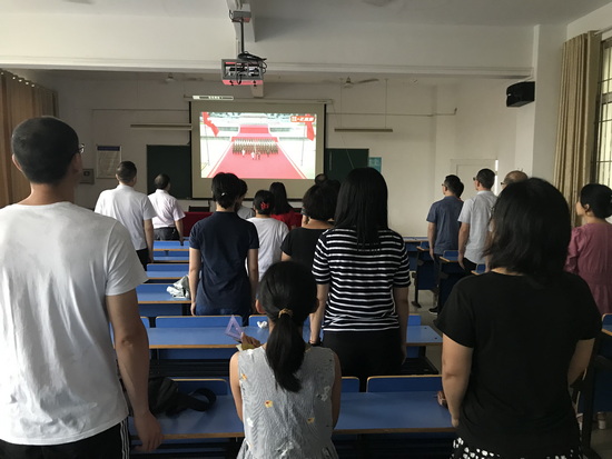 8时整,在学院党委、行政班子带领下,全体教师员工在隆隆的炮声中,肃立升国旗唱国歌。聆听了中共中央总书记、国家主席、中央军委主席习近平同志发表重要讲话。在学院教职工中引起强烈反响。