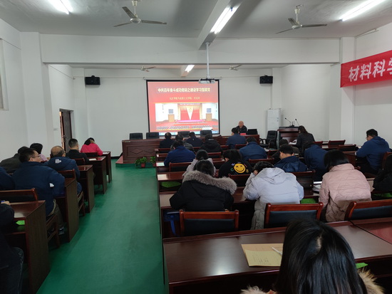 根据学校党委统一部署,12月22日下午,材料科学与工程学院在材料实验楼406会议室举行学习贯彻党的十九届六中全会精神宣讲报告会,邀请马克思主义学院肖克奇教授作宣讲报告。学院党委书记袁传发主持报告会。学院党政班子成员、全体教职工聆听了宣讲报告。