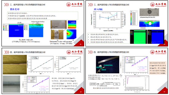 张义福博士做了《超声固结埋入光纤传感器的特性分析》的学术报告。介绍了光纤传感器封装的常用技术以及制备难点,并从实验和仿真方面着重阐述了金属超声固结的连接机理、光纤传感器埋入特性以及所制备的金属基智能结构的传感特性,还对后期拟开展的实验与在座老师进行了探讨交流。