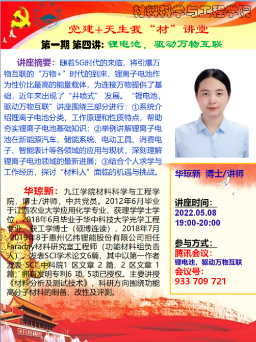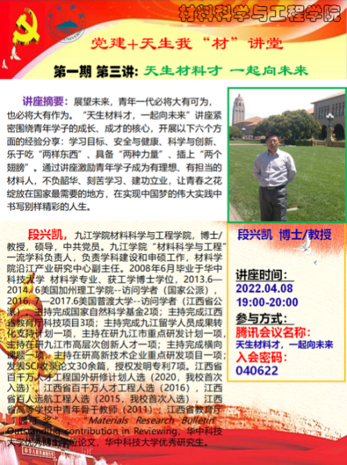 学院充分利用博士教师人数较多的优势,定期举办“党建 天生我‘材’”大讲堂,该活动旨在进一步发挥党员干部在立德树人中的带头作用,锻炼提升党员教师讲座能力,展示其学术水平,引导其做“四有好老师”,做学生的“四个引路人”,做到“四个相统一”,激发学术兴趣,营造良好的院风学风,为实现中华民族伟大复兴的中国梦,努力学习,成人成才。活动主要内容:面向全院师生结合个人求学、工作经历和研究情况,宣讲国家重大发展战略、分析国家“卡脖子”技术、普及国内外最新科技前沿、分享个人成长感悟与学术成果、解读学科专业与就业发展方向、解读各类项目和学科竞赛政策等。目前已开展了4期。