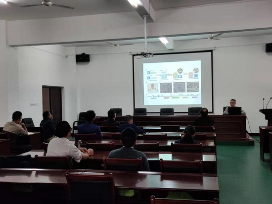 宋国城博士做了《超轻质气凝胶的制备与性能研究》的学术报告。阐述了气凝胶的研究背景及制备技术,重点介绍了气凝胶与纳米纤维气凝胶的制备原理,过程及影响因素等,详细分享了前期制备多孔结构纳米纤维及其改性的研究工作的进展,并对多孔纳米纤维在染料废水的吸附应用进行了汇报总结,最后结合气凝胶可能的应用方向与在座的同仁展开了进一步的探讨。