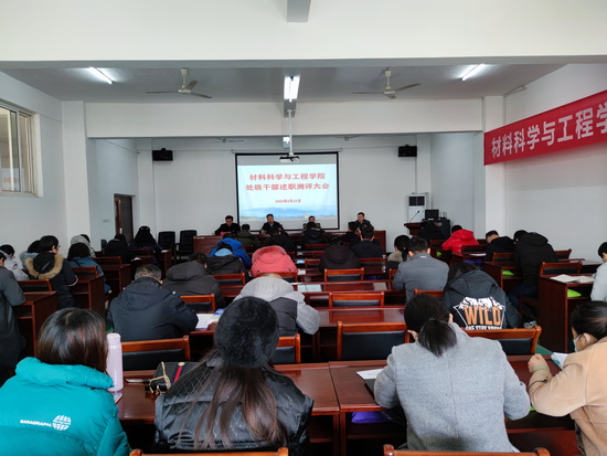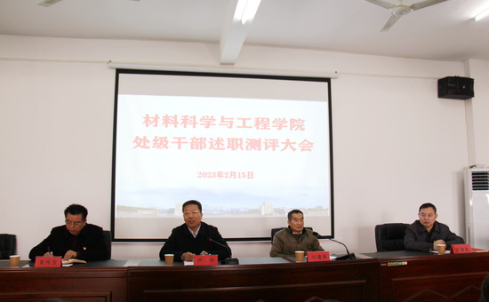 2023年2月15日上午,材料科学与工程学院在材料实验楼306会议室,召开处级领导班子和处级干部年度述职测评大会。副校长严平在校党委委员、统战部部长刘遵海和统战部综合科长黄晶晶的陪同下,莅临大会指导。会议由刘遵海主持,材料科学与工程学院全体教职工参加了会议。