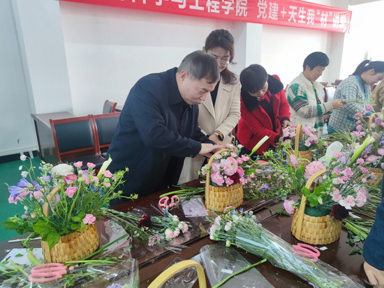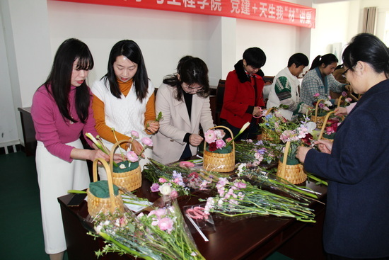 活动伊始,学院党委书记袁传发为女教职工送上节日祝福并提出希望。活动过程中,院长张德勤来到现场与老师们一起动手插花,并对女教师致以节日的问候和美好的祝愿。