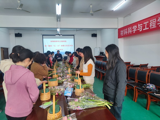春风扑面,百花飘香,在这鲜花盛开的季节,为庆祝“三八妇女节”,材料科学与工程学院于3月7日上午举办了庆祝“三八妇女节”插花活动。希望通过插花制作,让教职工们感受插花制作的快乐,更借用花木来抒发女教师的高雅情怀,以花感人,以花育人。