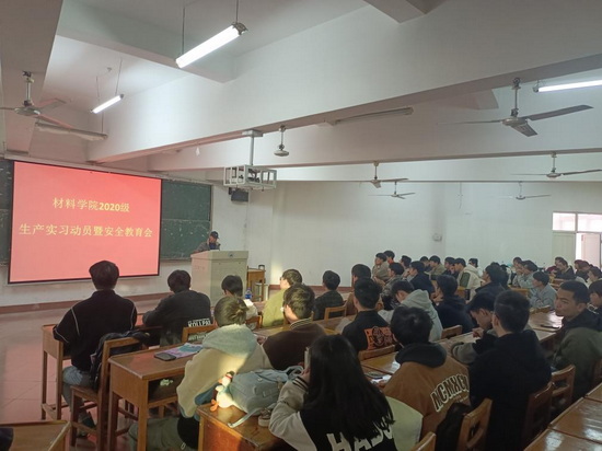 3月26日,材料科学与工程学院在竞知楼阶五教室召开2020级材料成型及控制工程、焊接技术与工程、金属材料工程三个专业学生赴湖北十堰东铸实习基地进行生产实习动员暨安全教育会。学院副院长李养良,本次实习带队指导教师胡孔刚、孙国栋、满达虎、张汪年、马世方及参加实习的全体同学参加了大会。