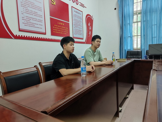 在会上,退伍大学生们进行自我介绍,分享自己的从军心路历程、部队生活,畅聊军旅生涯对自己的历练和提升,以及退伍后的大学生活。19级舒宗贵就择业、就业问题谈了自身遇到的困难。21级程明宇就考研计划提出了自己的疑问。