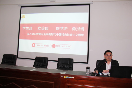 以党的创新理论武装头脑、坚定理想信念,是青年学生成人成才、走向成功的前提条件,更是青年共产党员和青年马克思主义者的首要任务和必修课。为推进主题教育走深走实,以习近平新时代中国特色社会主义思想铸魂育人,5月10日下午,我院党委书记袁传发在材料楼306会议室作主题为“学思想、立信念、跟党走、勇担当”专题党课。此次主题教育党课对象为我院学生党员、第三届“青马班”成员、各班班委及团委成员。
