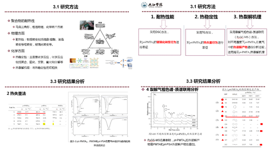 王林博士做了《改性聚对苯二甲酰间苯二胺热裂解机理研究》的学术报告。耐热聚合物纤维是大气污染的防治中最关键的材料,改性聚对苯二甲酰间苯二胺的研制有效地填补了当前国内高温烟气处理产业上的空白。报告介绍聚合物材料在受热过程中,其耐热性能与聚合物大分子的热裂解机理密切有关,通过热裂解气相色谱-质谱联用(pygs-ms)等方法,可以有力地解释改性聚对苯二甲酰间苯二胺聚合物的热裂解机理。同时,王博士还结合自身的企业工作经历,与在座老师就科研成果转化、企业横向项目合作等问题进行了探讨交流。