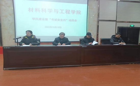为全面贯彻落实党的教育方针,围绕立德树人根本任务,促进学院学风建设,营造良好育人氛围,严肃考风考纪,增强学生诚信考试意识,材料科学与工程学院于12月19日在香远楼报告厅召开学风建设暨“考试安全月”动员会。学院院长张德勤、副院长李养良、党委副书记陈娜、学生科科长梅红平出席,学院辅导员、2023级全体班主任、学生,其他年级班长、团支书和学委参加会议,会议由陈娜主持。