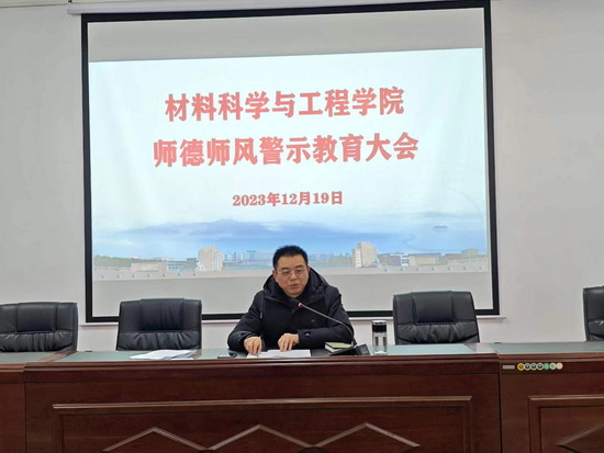 12月19日下午,材料科学与工程学院在材料实验楼306会议室召开师德师风警示教育大会。学院领导班子成员及全体教职工参加了会议。会议由党委书记袁传发主持。