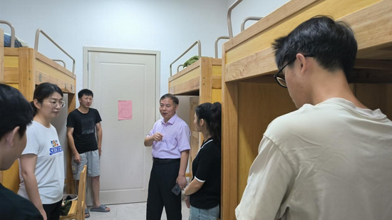 为关心暑期留校学生学习、生活和思想状况,激励考研学子把握备考黄金期,坚定考研信心,保持学习热情,7月19日上午,材料科学与工程学院开展暑期留校考研学生慰问活动。学院院长张德勤、党委书记陈娜、党委副书记熊焘、学生科科长、思政科科长及21级辅导员和班主任走进学生宿舍慰问考研学子,为备考的同学们送去夏日的清凉与学院的关怀。