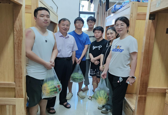 最后,学院领导和老师们为每位同学送上了西瓜、饮用水等慰问品,不仅饱含着学院对同学们深深的祝福,同时承载着学院对考研学子的殷切关怀。同学们纷纷表示,会更加坚定考研必胜的信心,以更加努力的实际行动回报学院的关怀,以更加饱满的状态投入到考研备考中,坚持到底,实现梦想。