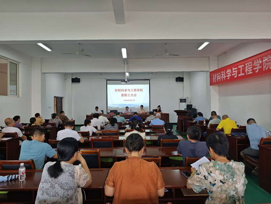 2024年8月31日下午,材料科学与工程学院在材料实验楼306会议室召开全院教职工大会,部署新学期学院各项工作。会议由党委书记陈娜主持,院长张德勤、省材料表面再制造工程技术研究中心主任王洪涛、副院长姚海龙、副书记熊焘和全院教职工参加会议。