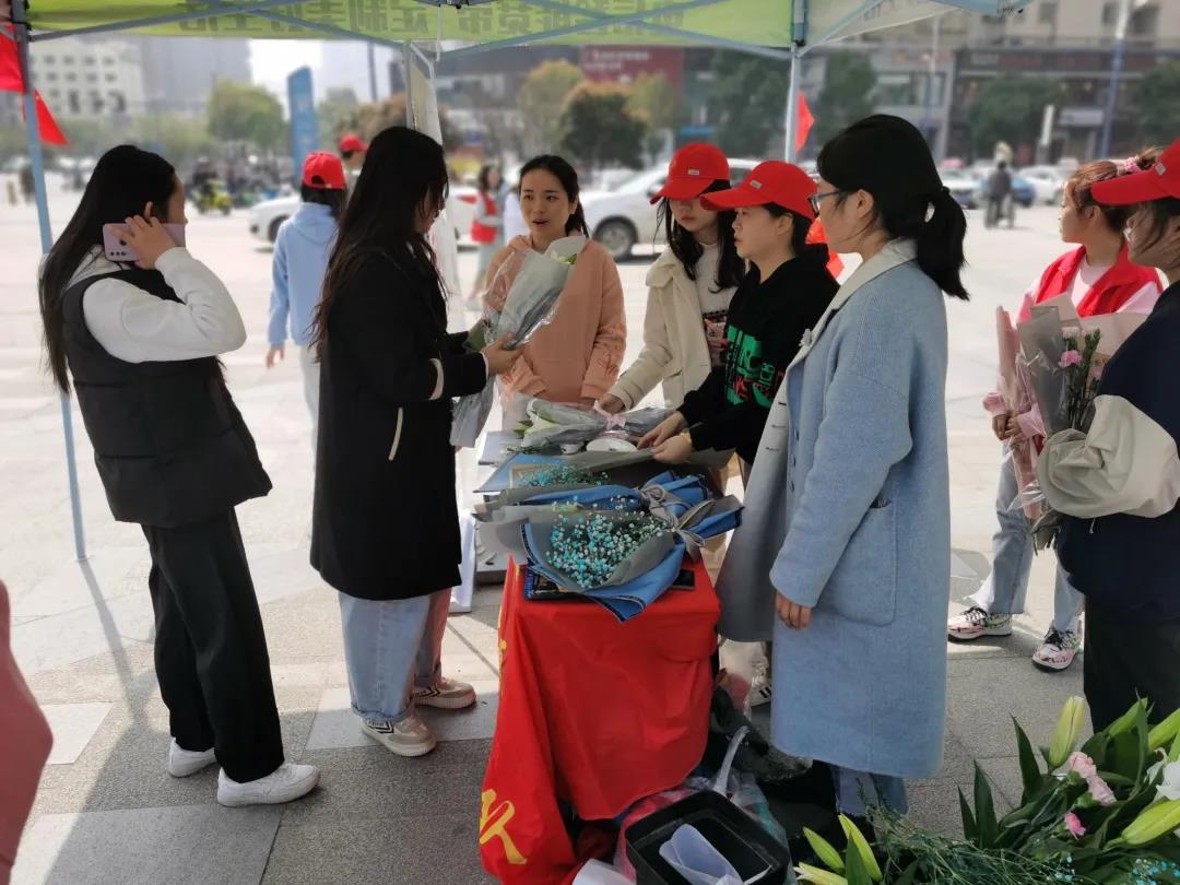 “爱心花卉义卖”、“来一束鲜花吧,帮助困境儿童”3月14日上午的联盛快乐城广场上吆喝声、叫卖声不绝于耳,身穿红色马甲的大学生志愿者们正在忙着进行“爱心花卉义卖,助力微心愿”活动。此次活动,由我校文传学院青年志愿者中心、材料科学与工程学院青年志愿者服务队联合举办。
