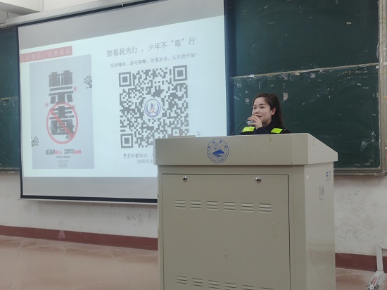 随后开展的是“禁毒”宣讲。在宣讲过程中,主讲人介绍了毒品的概念和类型,分别举出了两种类型毒品的实例。接着重点讲述了大学生目前最容易接触到的一种新型毒品“笑气”,并以一个个的故事和当事人的自身讲述阐释了毒品给个人、家庭、社会、国家造成的严重危害。之后用数据说明了九江市吸毒人员呈现多元化、低龄化趋势,着重强调了加强大学生禁毒教育的必要性,提醒同学们提高警惕,切莫沾染任何毒品。
