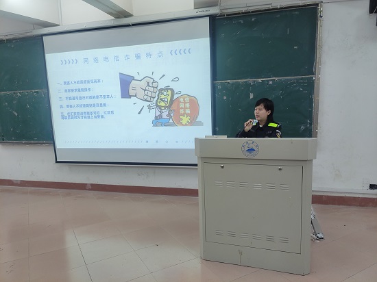 活动伊始,围绕“精准打击,全面防范,天下无诈”主题濂溪区特勤大队“反诈组”成员展开形象生动的宣讲。主讲人首先介绍了电信诈骗的起源,同时以数据说明了电信网络诈骗案例在近期刑事案件中所占比例之大,之后说明了主要的三种电信诈骗类型:网络刷单诈骗、网络虚拟购物诈骗与网络虚假贷款诈骗,并逐一举例讲解。同时,主讲人根据网络诈骗案件的特点,向同学们提出了防范电信诈骗的“五不要”和应该养成的“七个好习惯”。
