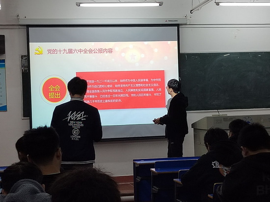 团课过程中,同学们认真学习了《中国共产党第十九届中央委员会第六次全体会议公报》的主要内容,深刻领会了习近平总书记在大会上的讲话精神,积极交流了学习体会和感悟。大家纷纷表示在将来的学习和生活中继续加强党史和“四史”学习,深刻体会中国共产党为什么能、马克思主义为什么行、中国特色社会主义为什么好,自觉传承红色基因、赓续精神血脉;矢志不渝“听党话、感党恩、跟党走”,厚植爱党爱国爱社会主义情感,树立远大志向,将个人梦与中国梦结合起来,以实现中华民族伟大复兴为己任;深刻认识自身所面临的时代际遇和历史责任,不辜负党的期望、人民期待和民族重托,不断将中国特色社会主义事业推向前进,做到强国有我,请党放心。
