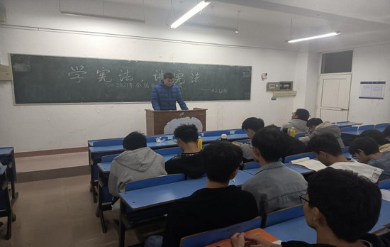 12月4日是国家宪法日,为认真学习贯彻习近平法治思想,深入贯彻落实党的十九届六中全会精神,培养学生学法、知法、守法、护法的法治意识,营造学校法治宣传氛围,让法制从理论走向实践、融入生活,结合相关文件要求,材料科学与工程学院组织大一各班级开展了“学宪法、讲宪法”主题班会活动,全体学生踊跃参加。