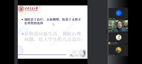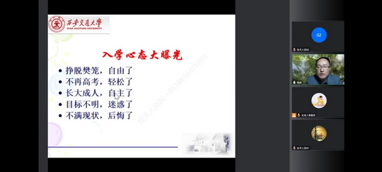 为针对性做好当前背景下大学生心理关怀,关注学生身心健康,28日晚七点,我校组织观看了江西省高校心理云课堂心理健康公益直播课。此次公益直播课主题为“新生心理健康与入学适应”。课上,西安交通大学心理中心主任姚斌教授围绕新生入学心理状态,交际心理出现的问题以及提出相应建议展开阐述。课程对缓解同学们来自在新学校的心理烦恼、树立健康阳光的心态提供帮助。