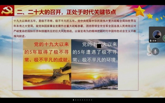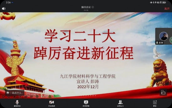 提出“开辟马克思主义中国化时代化新境界”的重大命题,是党的二十大报告的一个重要内容和突出亮点。为了引导广大青年认真学习领会这个重大命题,并深入学习贯彻习近平新时代中国特色社会主义思想,同时把握好这一思想的主要内容和蕴含其中的世界观和方法论,不断谱写马克思主义中国化时代化新篇章。2022年12月8日,材料科学与工程学院组织学生线上学习宣传“开辟马克思主义中国化时代新境界”宣讲活动,本次活动以腾讯会议线上形式举行,材料学院青马班学院和大一各班班委参与。由团委副书记彭涛主持此次会议。并担任此次演讲人。