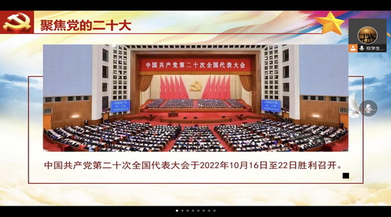 为深入学习贯彻二十大精神,有力宣传习近平新时代特色社会主义思想,赓续中国精神,引领同学们做到“三个‘务必’”,认识“两个确立”、“两个行”、“两个结合”,了解“四个面对”,做到学习新思想,争做新青年;坚定跟党走,奋进新征程,为走好新的赶考之路的必由之路奉献青春活力。结合二十大精神,12月10日晚,我院在腾讯会议线上展开“永远跟党走,奋进新征程”二十大精神宣讲。本次宣讲由校学生会主席团成员王鑫同学主持,50位材料学院青马班学员参与。