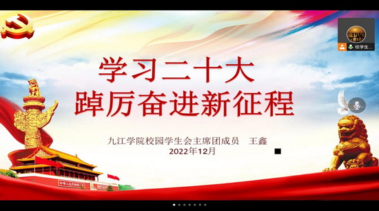宣讲会结束后,同学们纷纷表示,通过聆听宣讲更加深刻认识到了党的二十大精神的真正含义,即为全面建设社会主义现代化国家、全面推进中华民族伟大复兴而团结奋斗。“学习新思想,争做新青年,永远跟党走,奋进新征程”,让我们在以后的校园生活里,以二十大精神为指导思想,以复兴中国梦为最终目标,以实际行动为九院再创辉煌!