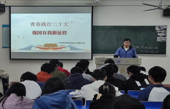 青春奋进正当时,不负韶华争朝夕。为深入学习宣传贯彻党的二十大精神,全面贯彻落实习近平总书记的重要讲话精神,3月12日材料学院于竞知楼开展以“青春践行二十大强国有我新征程”为主题的班会活动。