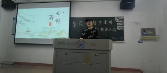活动开始,主持人向在座同学们介绍清明节的起源,和同学们共同讨论清明节习俗,并通过讲述革命先烈的故事,引导同学们在慎终追远、缅怀先辈的情怀中认知传统、尊重传统、继承传统、弘扬传统。