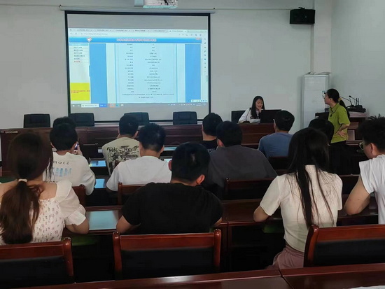 动员上,材料a1912班涂雯霞同学现场进行报名操作讲解。