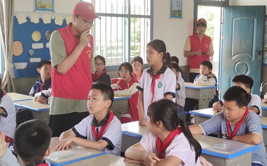 实践队走进湖口县凰村中学、东庄中学和流泗中学,开展“平安护夏”主题教育活动,活动开始,志愿者将防溺水工作作为重点,并对道路交通安全、饮食安全、消防安全等内容详细讲解。