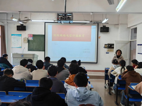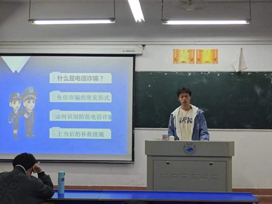 此次主题班会活动上,班长向同学们介绍什么是电信诈骗,电信诈骗是指通过电话、网络和短信方式,编辑虚假信息,设置骗局,对受害人实施远程、非接触式诈骗,诱使受害人打款或转账的犯罪行为。