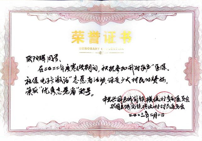 他多次作为志愿者参与各项公益事业,疫情期间,他利用寒暑假时间回到家乡奔赴疫情一线,最终获得“优秀志愿者”称号。同时他还带队参加材料学院暑期“三下乡”社会实践活动,并取得优异成果。正如习总书记强调,走进乡土中国深处,才深刻理解什么是实事求是、怎么去联系群众。青年人就要“自找苦吃”。