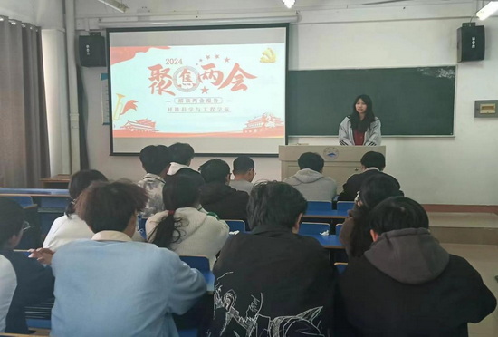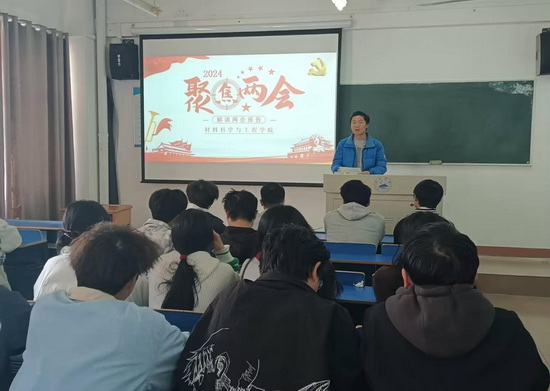 为深入学习贯彻“两会”精神,全方位、多角度把握两会动态,提高大学生的思想觉悟,强化新时代青年的使命与担当,3月20日下午两点在竞知楼307,材料科学与工程学院召开“聚焦两会”专题学习会。会议由学院思政科欧阳效卓老师和青马一班班主任陈英发同学共同主持,青马班全体成员参加。