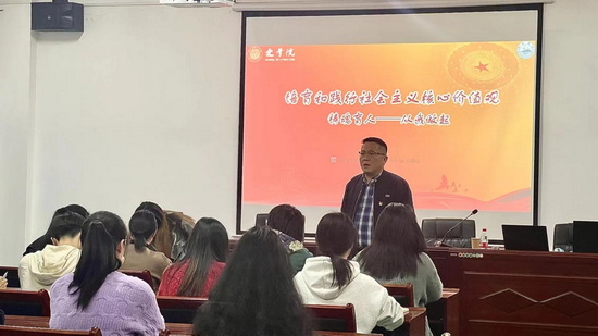 培训课上,杨思迪老师为同学们带来了一堂精彩的报告--《培育和践行社会主义核心价值观》。报告深入阐述了核心主义价值观内涵意义,指出核心主义价值观源于中华民族优秀传统文化,包括爱国主义、集体主义、社会公德、诚信友善等,是全体中国人民共同遵循的价值准则。在新时代背景下,核心主义价值观具有重要的现实意义,它不仅是国家文化软实力的重要组成部分,也是民族精神的核心所在。报告强调只有深入培育和践行核心主义价值观,才能凝聚起全体人民的力量,为实现中华民族伟大复兴提供精神支撑。