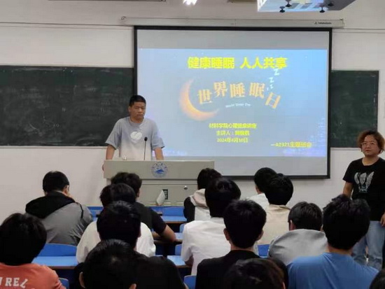 为了改善学生睡眠质量、提升心理健康水平,营造和谐、健康的校园氛围,材料科学与工程学院于2024年4月10日晚在竞知楼开展心理健康主题教育系列活动,本期活动主题为“健康睡眠,人人共享”,主讲人为辅导员鞠银燕老师。
