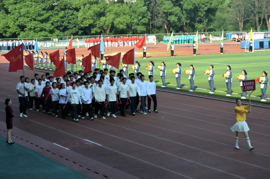 开幕式上,材料科学与工程学院方阵气宇轩昂、斗志昂扬。整齐铿锵的步伐,手中挥舞的彩旗和国旗深切表达了同学们的爱国之心。精彩绝伦的《龙的传人》舞蹈表演,生动地展示了中华文化的博大精深以及中华民族源远流长的历史传承。方阵队伍的精彩表演,展现出我院师生团结协作、勇于拼搏的精神风貌及勇争佳绩的坚定信心。活力四射的方针表演,赢得了观众席上师生们的热烈掌声。