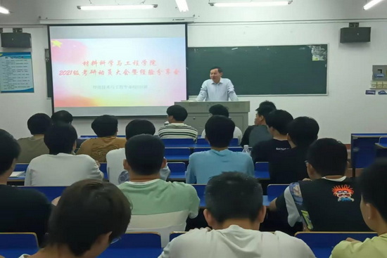 为充分发挥优秀考研学生的榜样引领作用,进一步加强学风建设,激发学生考研热情,营造良好考研氛围,助力考研学子做好学业规划,增强考研信心。材料科学与工程学院于2024年4月28日星期日在竞知楼召开考研动员大会暨经验交流分享会。学院院长张德勤、党委副书记陈娜、省材料表面再制造工程技术研究中心副主任王洪涛、副院长姚海龙,2021级各班班主任、考研指导老师及2024届考研上岸学生代表、2021级全体学生参加会议。