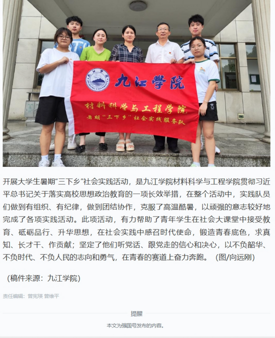 在社会实践中,无私奉献,提高人生阅历。他多次作为志愿者参与各项公益事业,疫情期间,利用寒暑假时间回到家乡做防疫志愿者,目前志愿服务时长达50小时。带队参加材料学院暑期“三下乡”社会实践活动,并取得“先进个人”称号。“感召时代使命,锻造青春底色——三下乡社会实践活动纪实”被“新华社”、“人民日报”、“学习强国”等多家主流媒体相继报道。