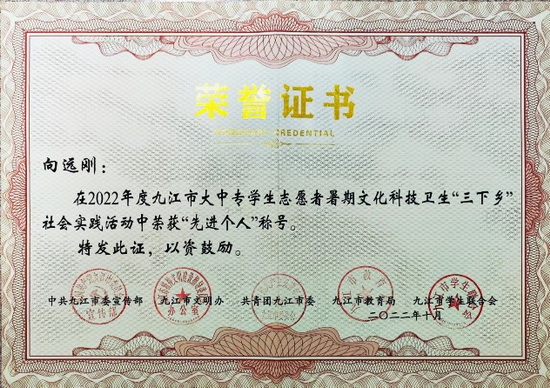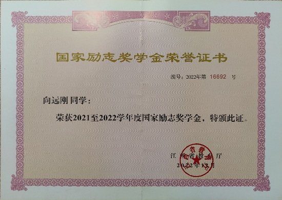 满怀感恩之情和无限憧憬,不远千里到了美丽的九江学院。他无比珍惜这来之不易的每一天。无限感恩这一切,更知道努力的意义。通过自己的努力,综合测评成绩都名列前茅,获得了两次国家励志奖学金,1次校二等奖学金,2次校三等奖学金。此外还利用一切资源努力提高自身综合能力。