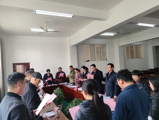 根据学校党史学习教育领导小组关于“唱响红色经典,凝聚奋进力量”的倡导,会议伊始,与会人员齐声合唱《没有共产党,就没有新中国》歌曲。