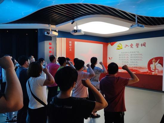 最后,学院全体党员面向党旗庄严宣誓,重温入党誓词。