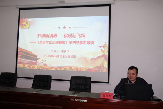在喜迎二十大之际,为推动全院师生进一步学深悟透《习近平谈治国理政》第四卷,10月19日下午,材料科学与工程学院邀请马克思主义学院谢伏华博士作《习近平谈治国理政》第四卷专题宣讲报告会。报告会由学院党委书记袁传发主持,全体教职工参加了报告会。
