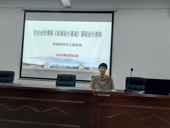 6月28日下午,材料科学与工程学院306会议室气氛紧张、热烈,校企合作课程《机械设计基础》课程设计答辩正在进行,本次答辩的同学是来2021级焊接技术与工程专业、材料a2131班全体同学,《机械设计基础》企业主讲教师李兵高级工程师、学校主讲教师李养良教授参加了此次答辩会。