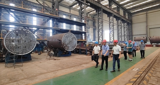 为满足焊接技术与工程专业应用型转型实训教学需求,材料科学与工程学院计划在校内建立以压力容器制造为行业背景的校内实训中心。7月22日,材料学院副院长姚海龙、冶金与材料工程现代产业学院副院长安丰辉、焊接教研室主任张义福、副主任胡孔刚等深入冶金与材料工程现代产业学院合作企业中船九江锅炉有限公司开展“焊接工程训练中心”建设调研。